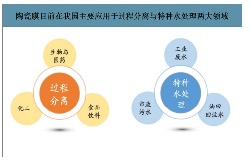 陶瓷膜目前在我國(guó)主要應(yīng)用于過(guò)程分離與特種水處理兩大領(lǐng)域