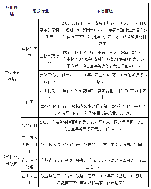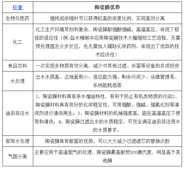 陶瓷膜的主要細(xì)分應(yīng)用行業(yè)